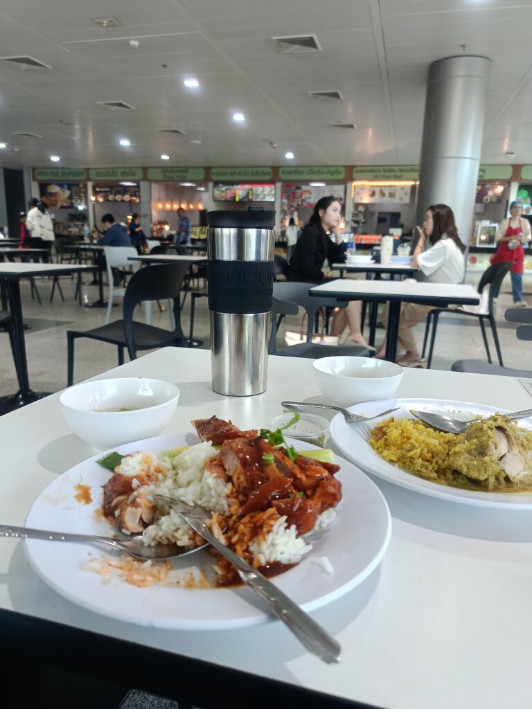Di hujung Gate 4 stesen kereta api Krung Thep Aphiwat , ada foodcourt dan di situ ada dua warung menjual makanan halal. Tapi, stesen kereta api Krung Thep Aphiwat ni memang besar, penat jalan nak cari Gate 4 ni. Bila perut sudah diisi, barulah kami pergi cari teksi untuk ke hotel.