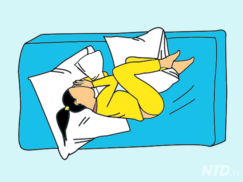 Posisi tidur begini sesuai untuk wanita yang mengalami simptom berkaitan PMS. Letakkan sebiji bantal di bawah bahagian belakang lutut untuk mengelakkan rasa sengal di bahagian tulang belakang.